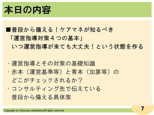 介護職、ケアマネジャー、管理者・本部責任者として15年間介護現場の実務とマネジメントを担当。その経験を生かし、経営幹部、管理者、ケアマネジャー、介護職らに実践的で明快なコンセプトとノウハウを提供する。
