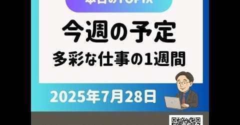 【2025年7月28日 今週の予定 多彩な仕事の1週間です】