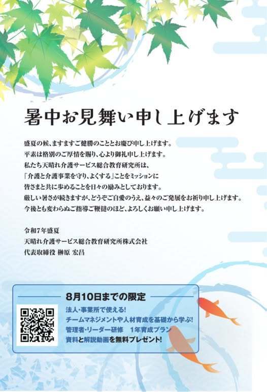 厳しい暑さが続きますが、どうぞご自愛のうえ、