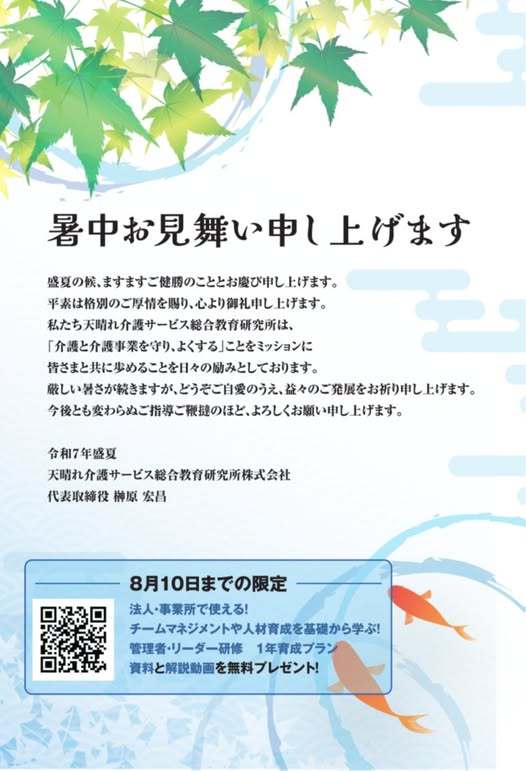 厳しい暑さが続きますが、どうぞご自愛のうえ、
