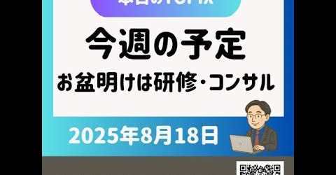 【2025年8月18日 今週の予定 お盆明けは研修・コンサルティング】