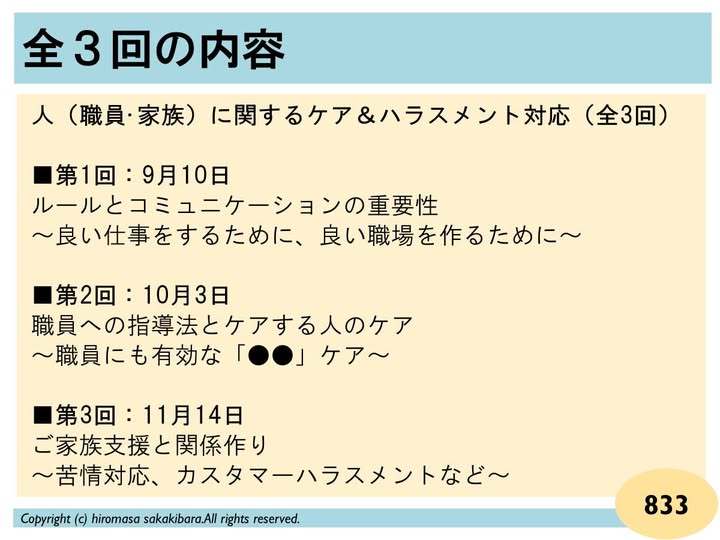 普通ケアというとね、利用者さん向けの話をするんですけど、