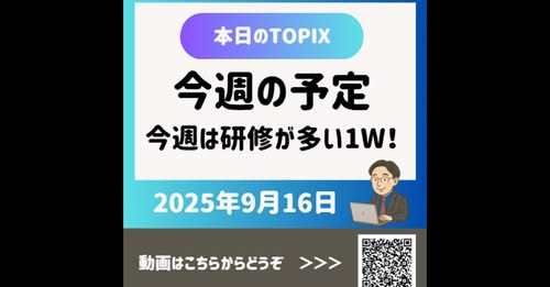 【2025年9月16日 今週の予定「今週は研修が多い1週間です!」】
