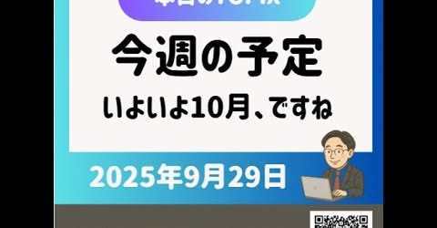 【2025年9月29日 今週の予定 いよいよ10月、ですね】