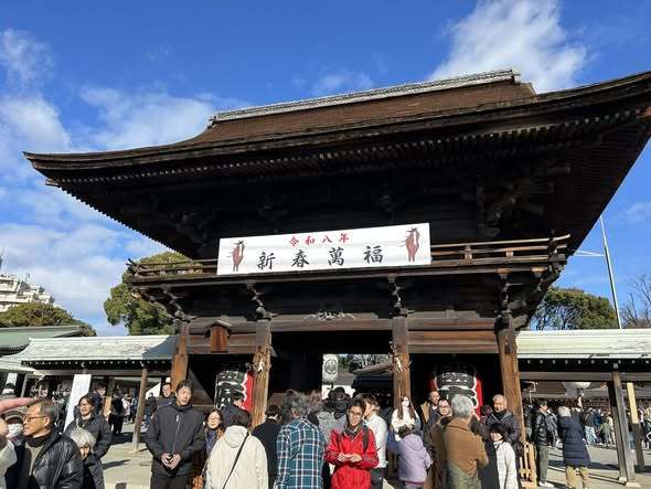 神社の朝のお勤めを終えて、家族で初詣に出掛けてきました