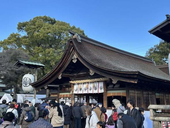 神社の朝のお勤めを終えて、家族で初詣に出掛けてきました
