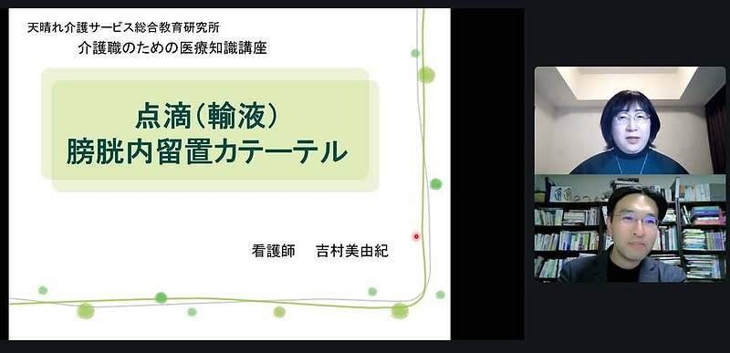大好評!吉村NSの介護職のための医療知識講座。今日のテーマは「点滴、膀胱内留置カテーテル」です!(2026.1.21)