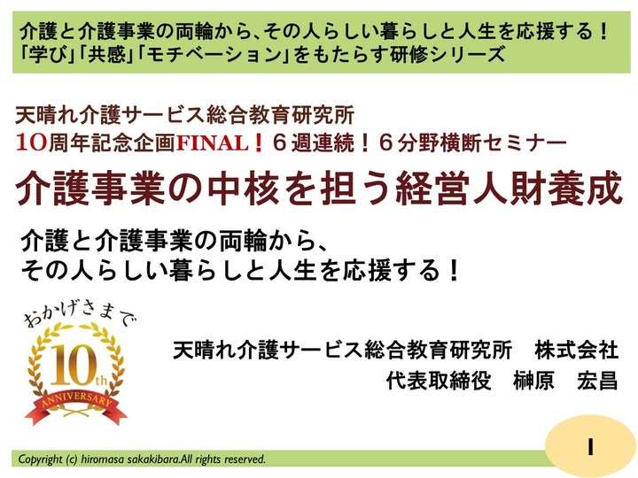 天晴れ介護サービス創立10周年記念6分野横断セミナー