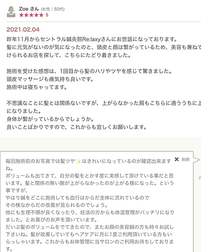 美容鍼や育毛もすごく効果ありそうなので(ビフォーアフターの写真をたくさん見せていただきました)、悩んでる方がいたら全力でオススメしたいです。