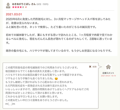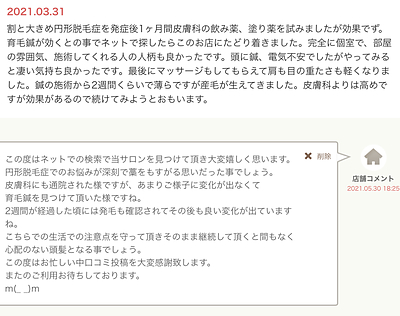 この度円形脱毛症の育毛鍼施術でのご利用ありがとうございます。