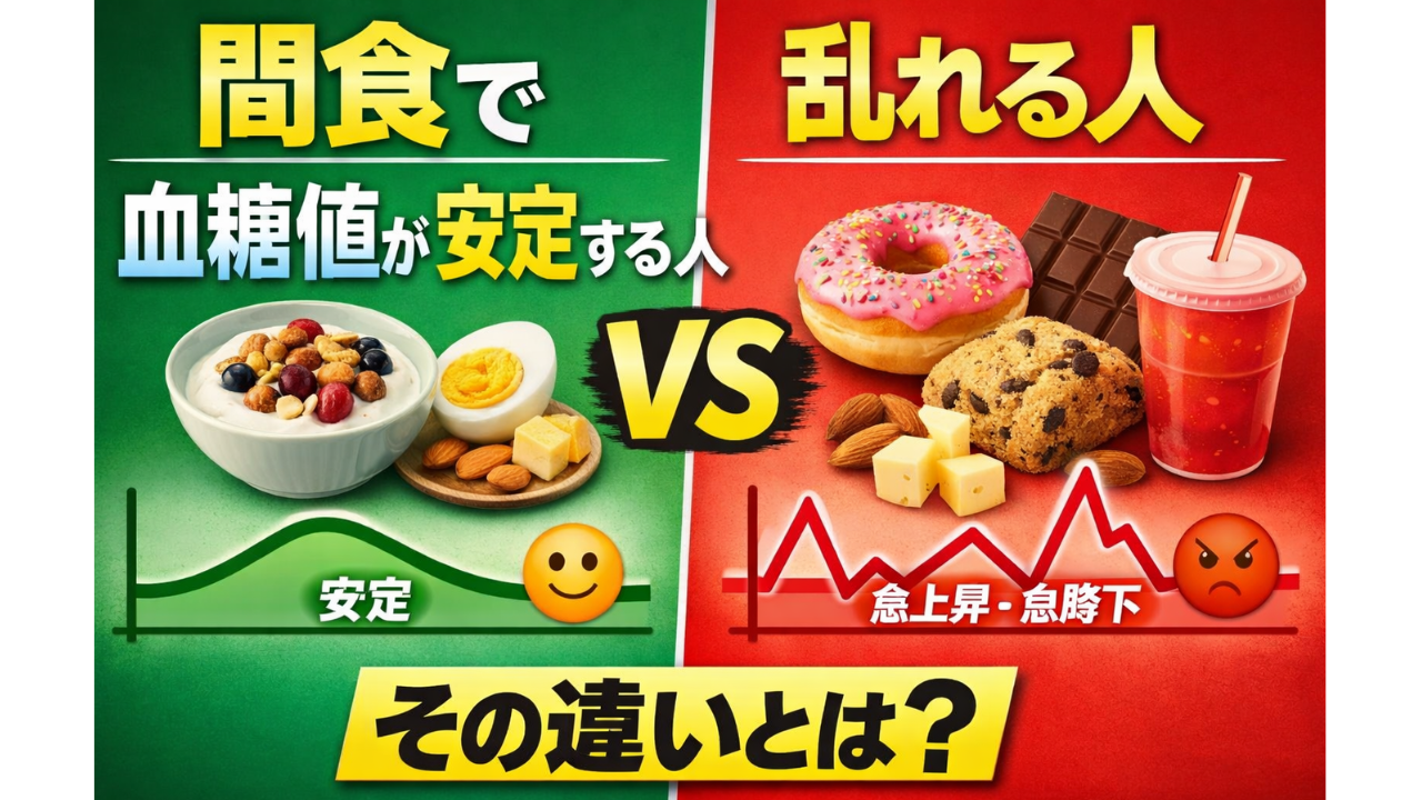 違いは“食べるか・食べないか”ではなく、間食の中身と使い方です。