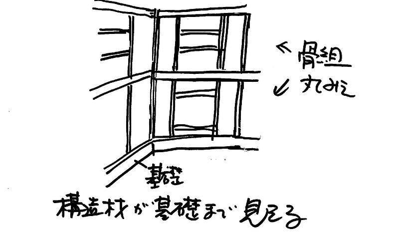 設備の工事が楽になるだけではありません。耐震補強工事も同じです。誰も住んでいない、骨組みだけ残して丸裸にしてしまうのですから、耐震診断し補強計画を考えて、ここに壁ほしい思えばそこに基礎を作り、梁を入れ、柱を建て補強壁を作ることが出来ます。