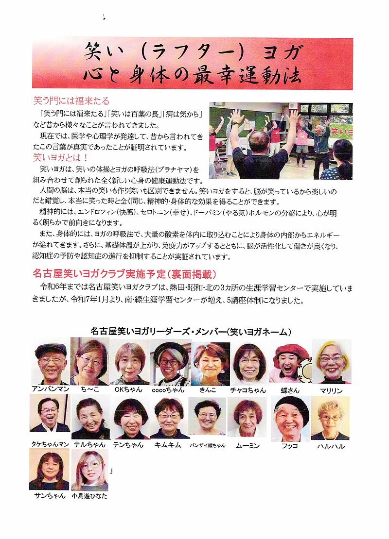 名古屋笑いヨガクラブの6月までの日程が決まりました。