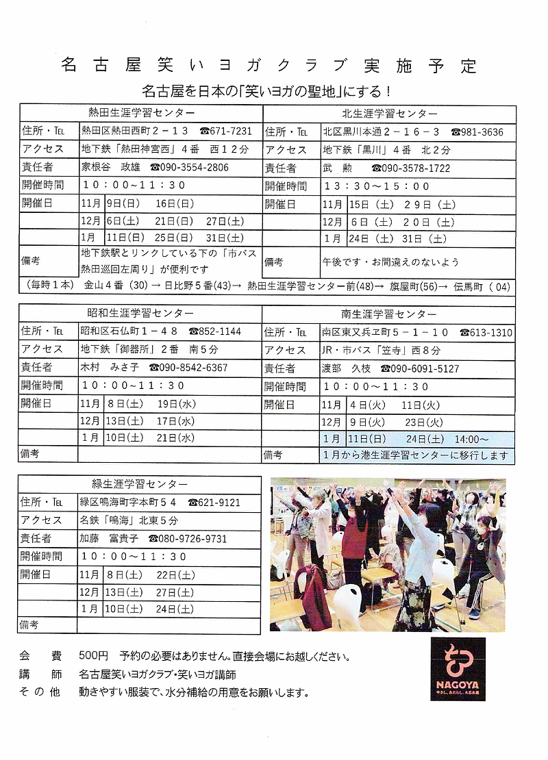 名古屋笑いヨガクラブ 11月~令和7年1月の予定