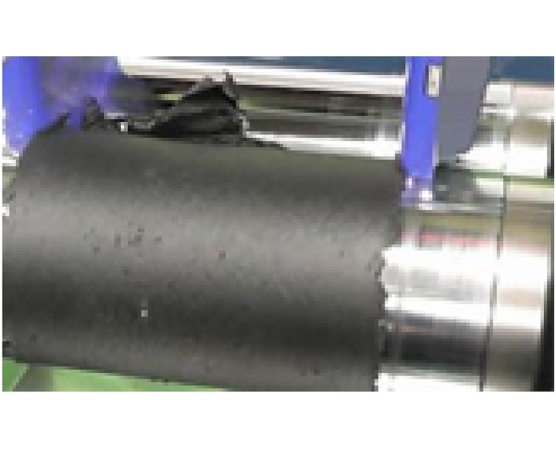 素練り工程では、ポリマーのみを混練機で練り込みます。オープンロールでの素練りは、ブロック状のポリマーをロール間に通し、段々とロール間隔を狭めて薄く伸ばしていくことでロールに巻き付けます。ポリマーにせん断力を加えることで材料粘度を下げ、弾性が強い状態から可塑化させ配合資材を練り込みやすい状態にします。