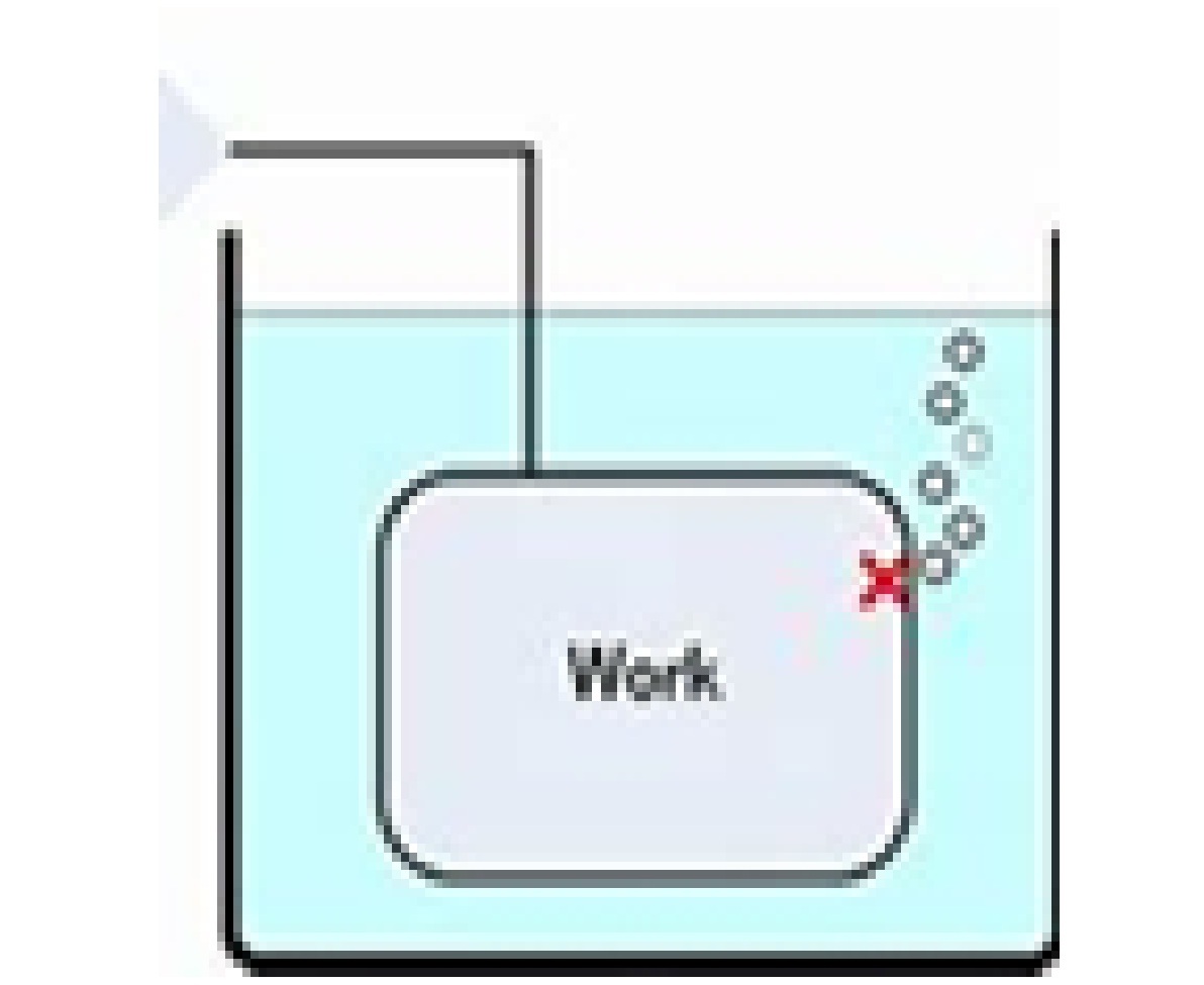 一方、デメリットとしては、検査時、水没させる必要があることから、検査後に水切り、乾燥等の処置が必要であること、製品・部品が密閉構造の場合は、この検査が困難であるということなどがあげられます。(泡を出させるためのエアー源が必要)