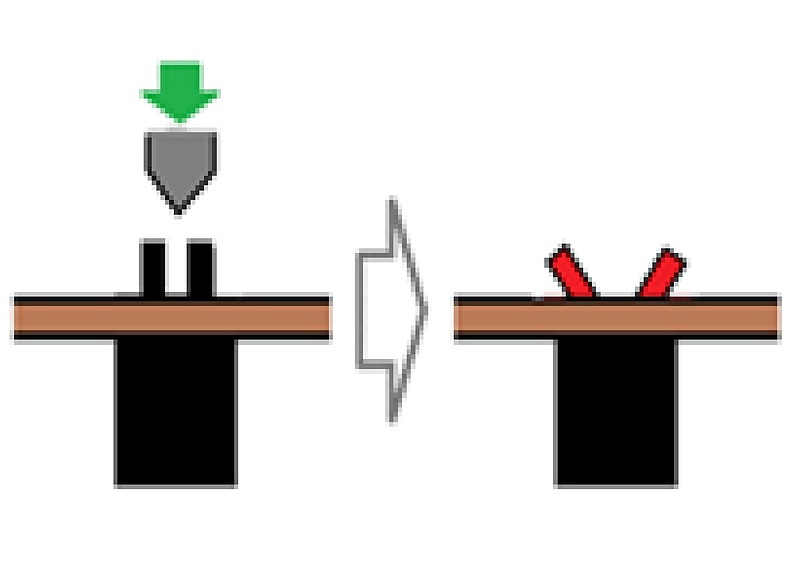 この鉸め方法のメリットとしては、一般の平鉸めと比較し、鉸め部が変形しやすく、低荷重で鉸めが行える点です。
