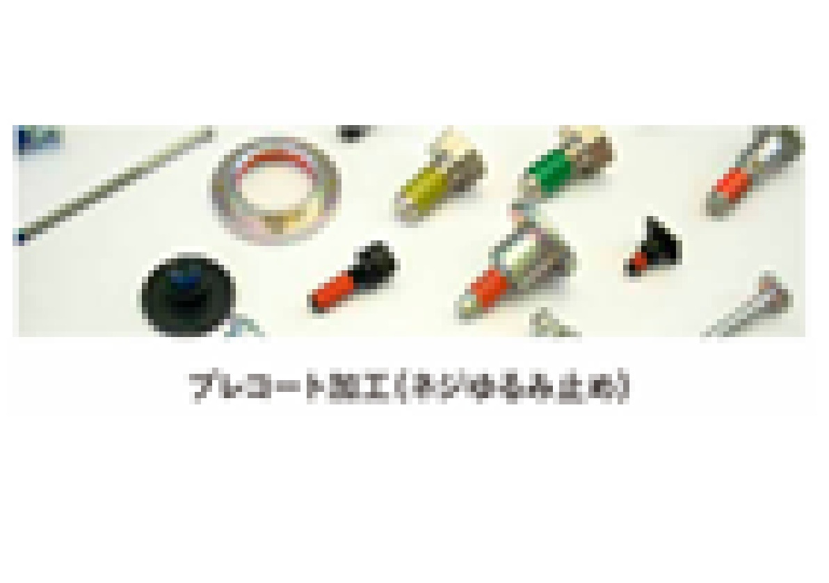 同社は、プレコート加工(予めねじ山に接着剤を塗っておく加工方法)及び、樹脂コーティング加工(均一で美しい表面コーティング加工)の専門メーカであり、特に樹脂コーティングは、前加熱、送風、浸漬工程等で、自動車関連で培った30年の技術力を強みとしてます。