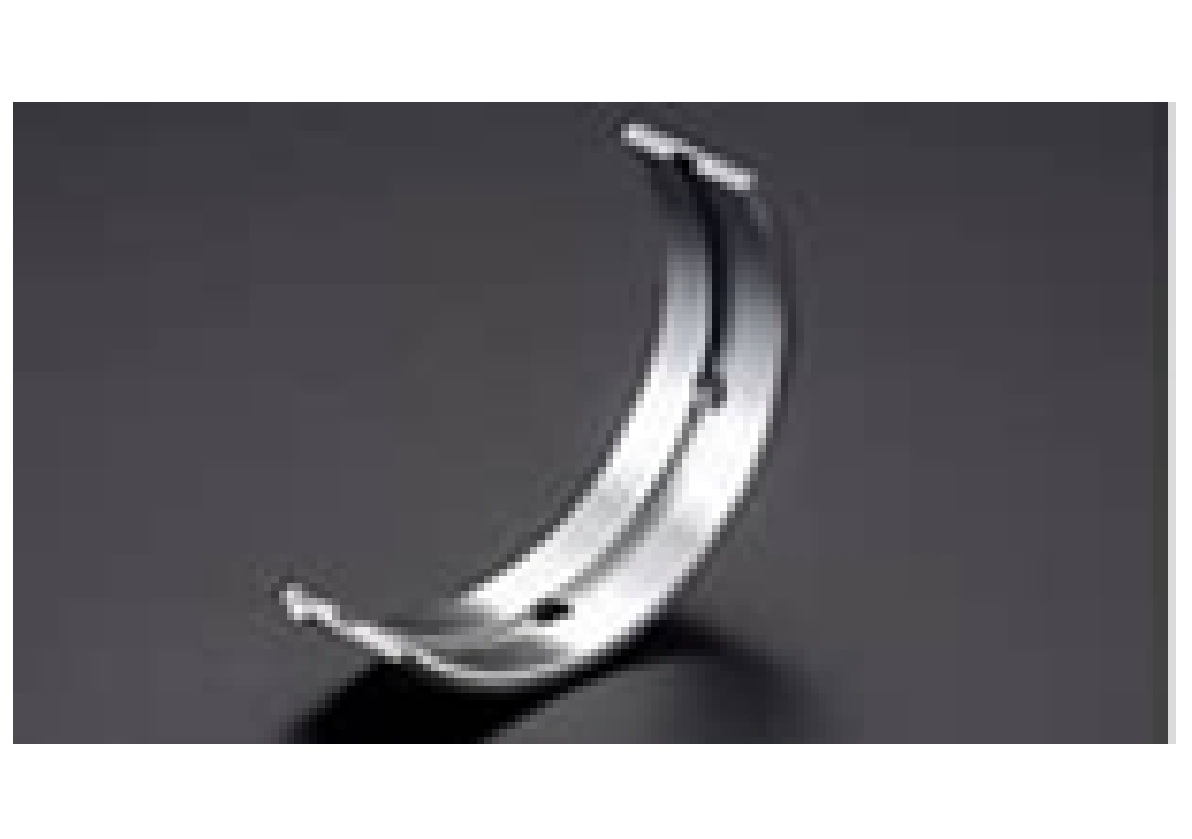 クランクシャフトやコネクティングロッドの大端部など、複雑な形状の位置にある軸の場合には、円筒形の軸受けでは組み付けができない為、この半割り軸受けを使います。