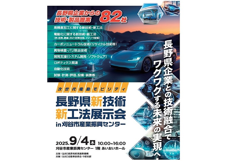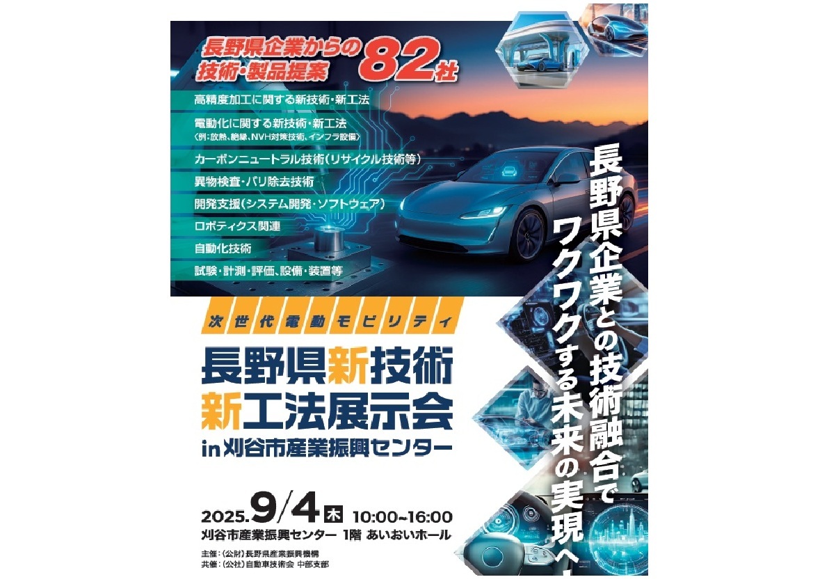 本展示会では、長野県内の製造業企業が多数(82社)出展し、自動車関連産業を中心とした東海地区企業との交流・商談機会を提供するものです。