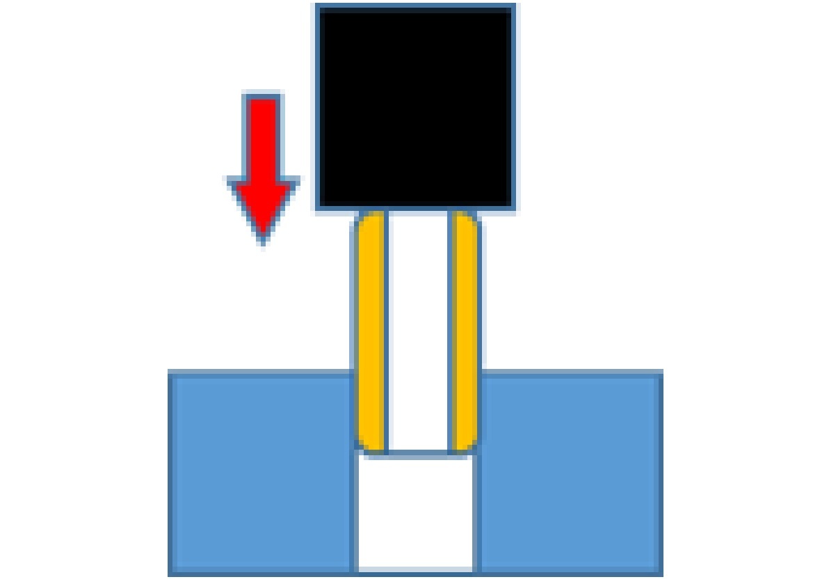 一般的には加工条件として一定の加圧力、加圧スピードで圧入を行い、出来映えとしての圧入寸法を確保するためにストッパー(ワークストッパー、外部(治具)ストッパー)を設けて行います。