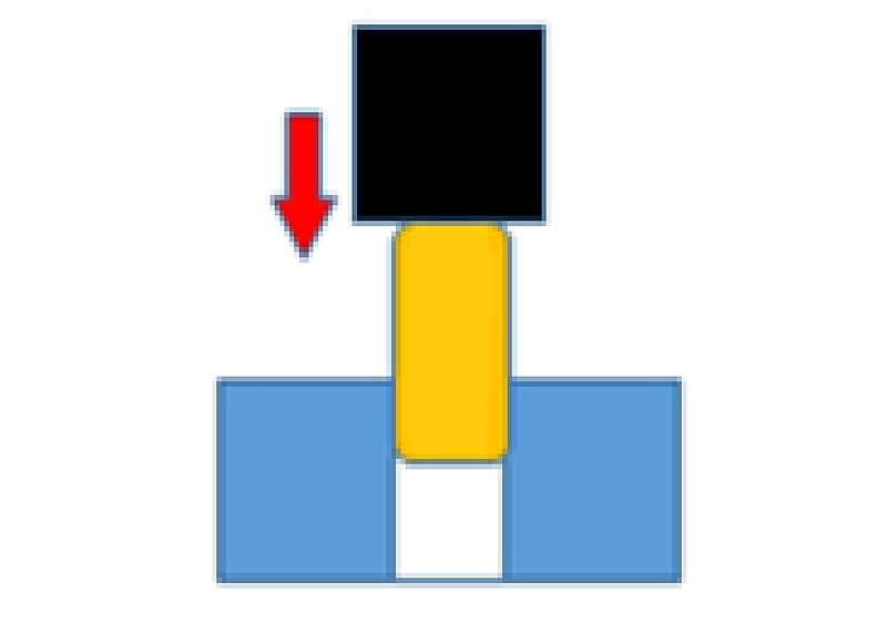 圧入加工の目的は、金属部品(2部品)を機械的に一体化することにあります。この圧入加工のメカニズム(手順)について代表的な円柱(棒)の圧入を事例としてコメントします。
