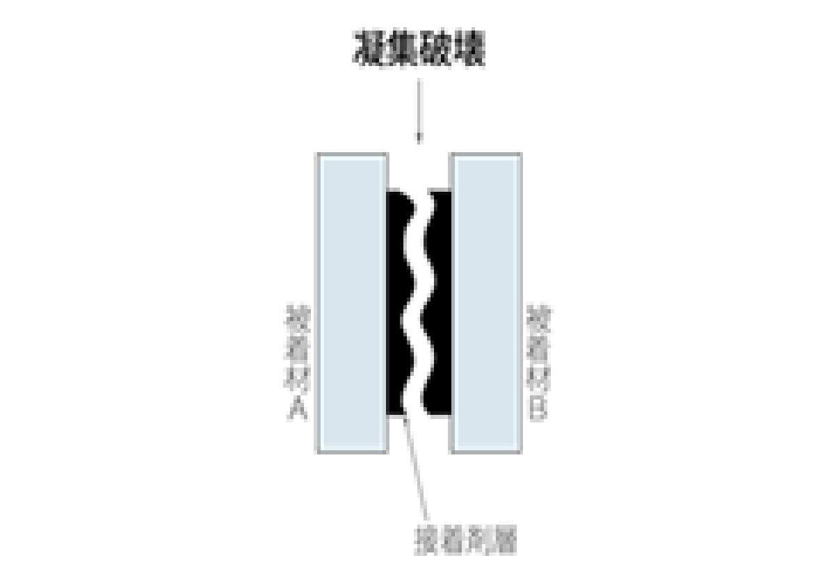 凝集破壊(Cohesive failure)とは、接着剤の内部で発生する破壊の一種です。 この破壊は、接着剤の物性に基づいており、接着強度のばらつきが小さく、理想的な破壊状態とされています。