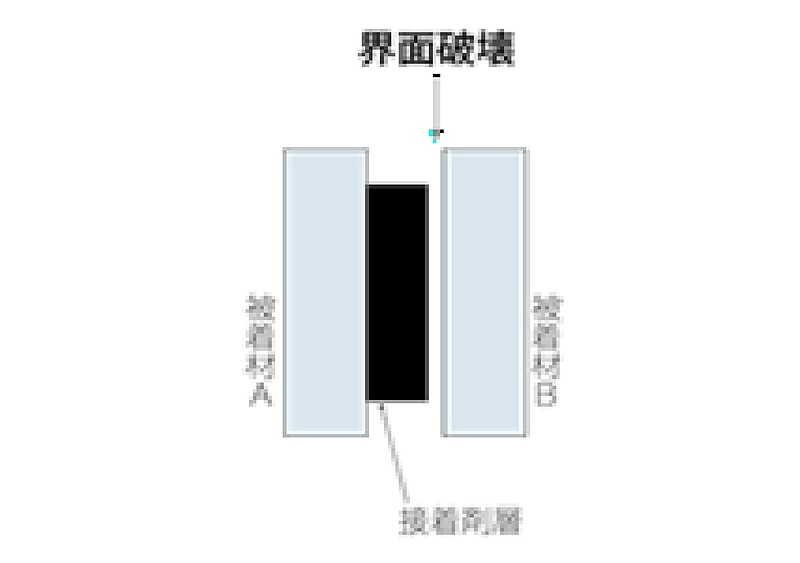 界面破壊(Interfacial fracture)は、接着剤と被着材料の接合界面、または被着材料自体で発生する破壊の一形態です。具体的には、接着剤が一方の被着材料に付着し、もう一方の面が露出した状態を指します。これは、接着強度のばらつきが大きくなる原因となり、通常の接着で最も多く見られる現象です。
