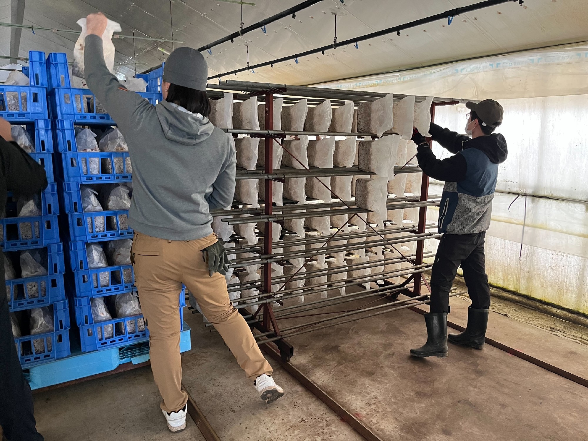 菌床入れは体力も使う作業ですが、その分やりがいも大きく、今後の美味しい椎茸づくりにつながる大切な工程です。