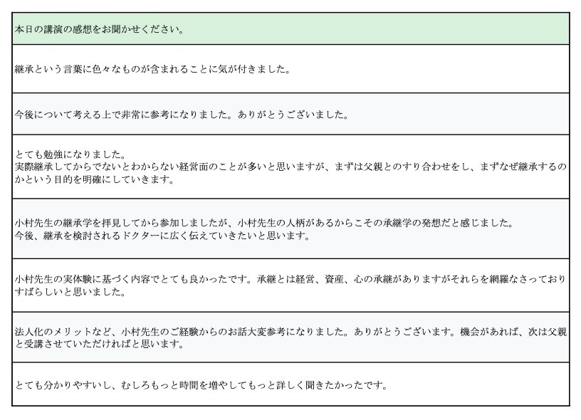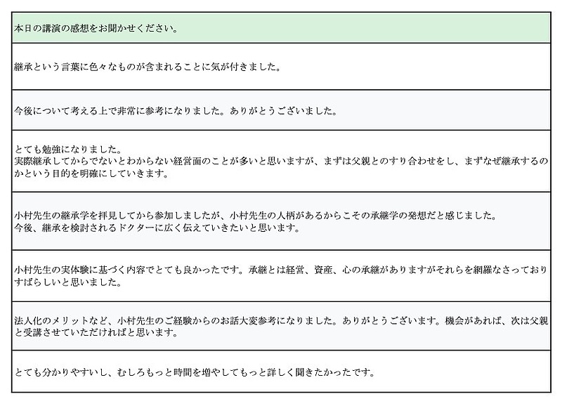 5月に仙台盛岡で開催されたセミナーの参加者アンケートもいただき
