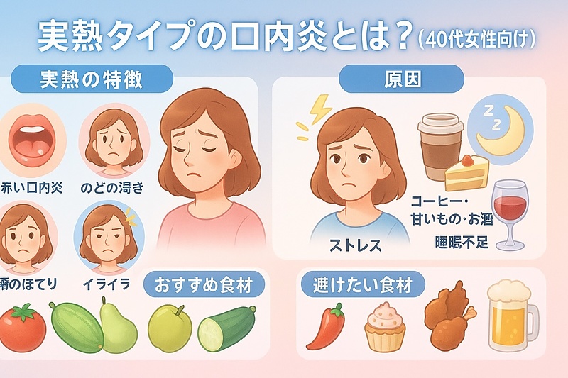 実はこの背景には、忙しい生活と、年齢による体の変化が重なって起きる「実熱タイプの口内炎」が関係していることがあります。