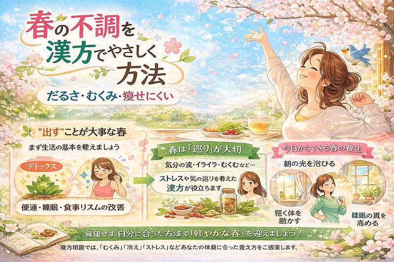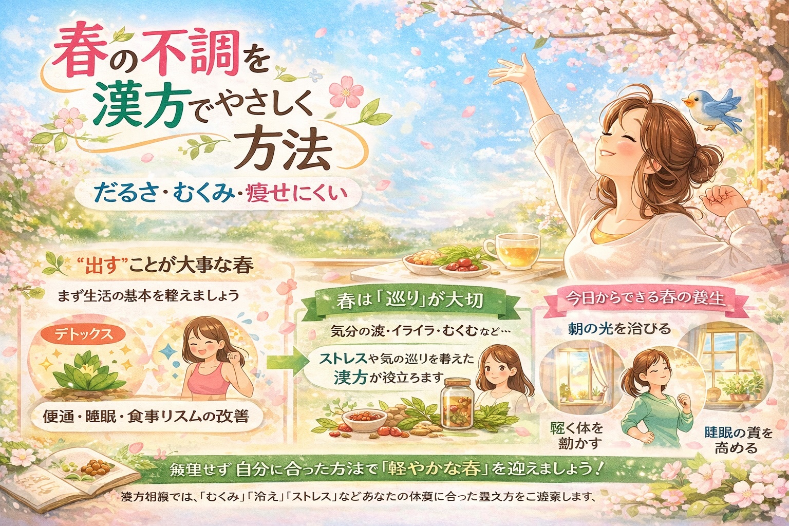 今回は、春に起こりやすい「だるさ」「むくみ」「春太り」などの不調について、漢方の視点も交えながら、わかりやすくお話しします。