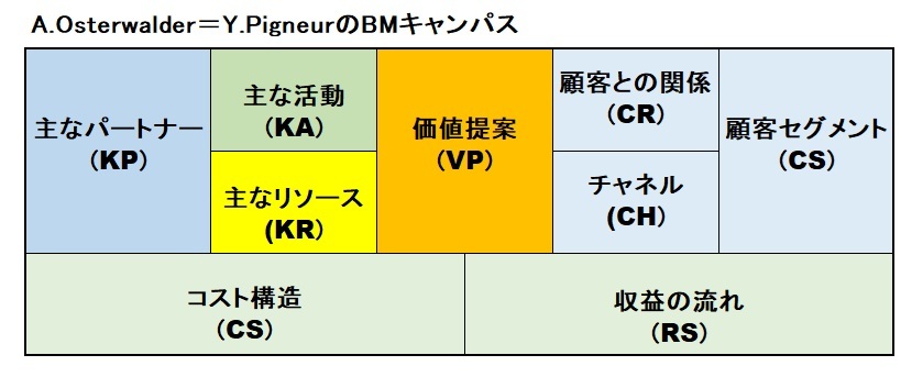 新規事業の立ち上げや知財活動には、自分たちのビジネスモデル(BM)に対する理解を深め、社内や出資者への説得力のある説明が必要である。ビジネスの構造を可視化したフレームワークとして、ビジネスモデル(BM)キャンバスが、スイスのA.オスターワルダー(Osterwalder)とY.ピニュール(Pigneur)によって開発された(アレックス・オスターワルダー、イヴ・ピニュール著『ビジネスモデル・ジェネレーション ビジネスモデル設計書』、翔泳社、(2012))。Y.ピニュールは、ローザンヌ大学のマネジメント情報システム科の教授である。