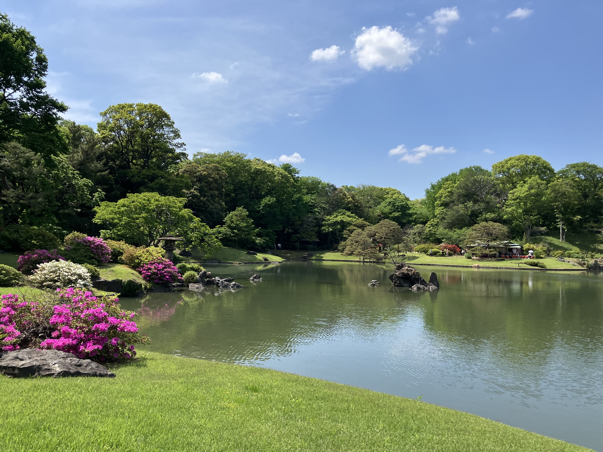 2025年5月1日五月晴れの一日。東京都内散策。 六義園は、徳川5代将軍綱吉に仕えた栁沢吉保の別邸です。つつじがほぼ満開。ゆっくりと日本庭園を散歩しました。 すぐ近くに、旧古河庭園があります。こちらは洋館と日本庭園のセット。とくにバラ園が有名です。まだ咲き始めと言ったところ。コンドル氏設計の代表的な建物です。 六義園と旧古河庭園は、『園比べ』という入館セットで入場券を購入できます。