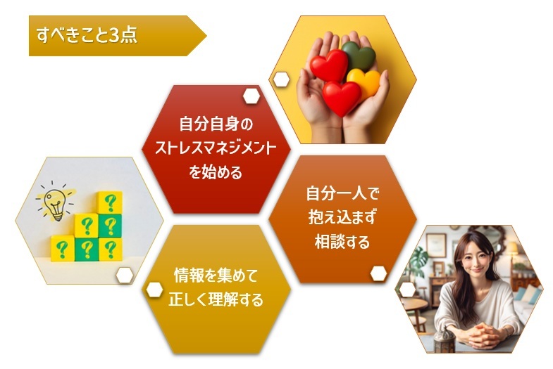 支援制度やカウンセリングなど、利用できるものは積極的に活用し、無理をしすぎないことも大切です。