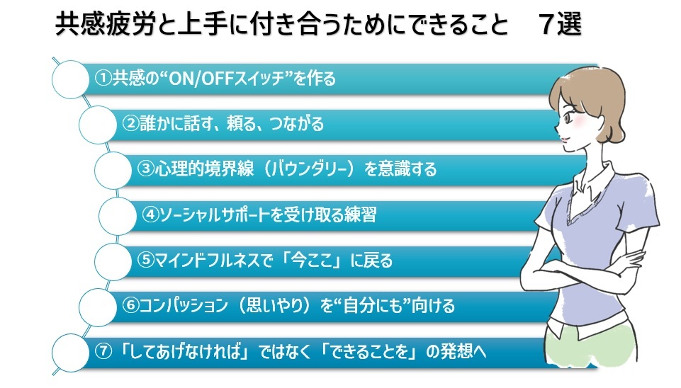 共感疲労を予防・回復するには、「感情の距離」を取る練習も大切です。