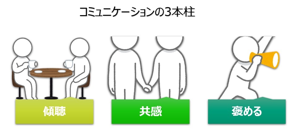 傾聴・共感・褒める。