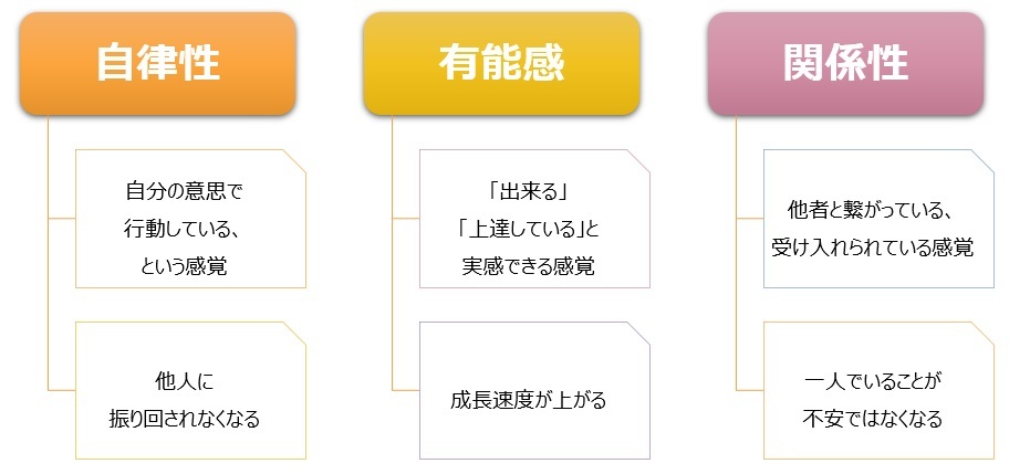 自己決定理論は、自分の中の「自律性」「有能感」「関係性」という3つの欲求を育てることで、「自分で選び、納得して生きる」力を育む理論です。