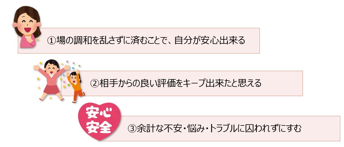 ①場の調和を乱さずに済むことで、自分が安心出来る