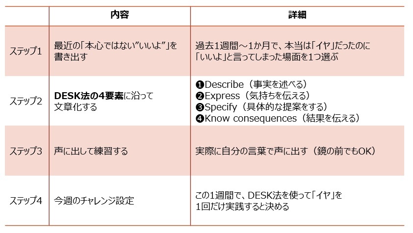 この1週間で、DESK法を使って「イヤ」を1回だけ実践すると決める
