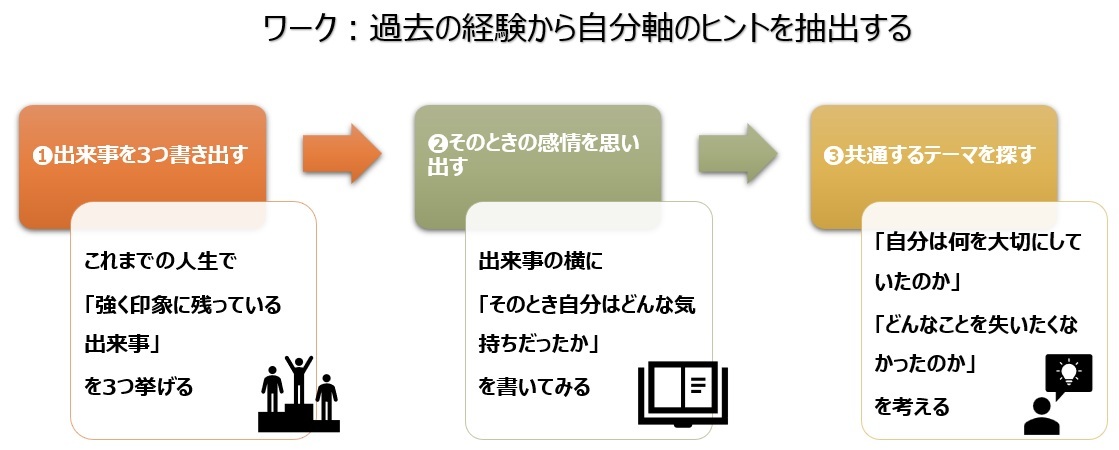④ワーク:過去の経験から自分軸のヒントを抽出する