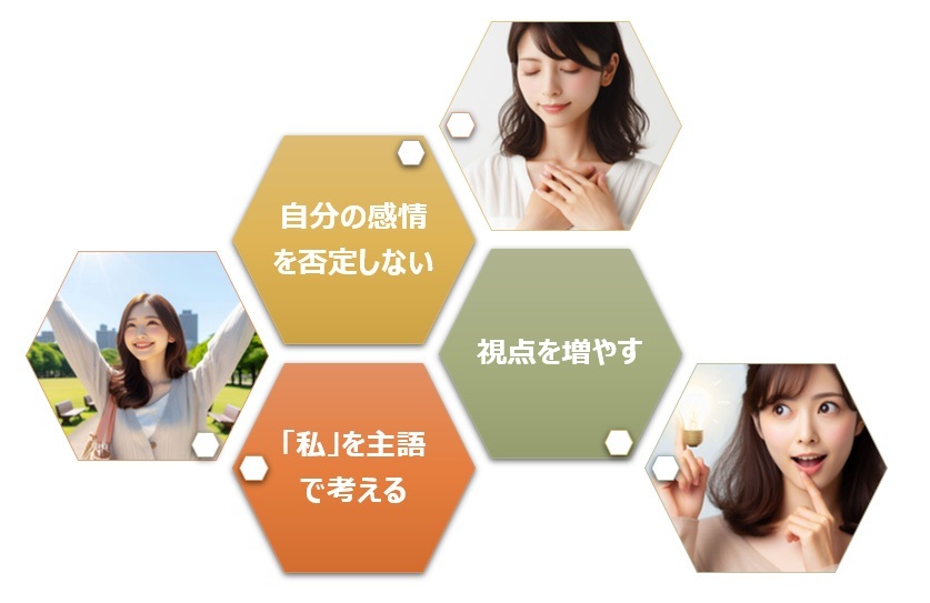 大切なのは完璧を目指すことではなく、「私は」という視点を忘れず、いろんな見方を試し、感情をそのまま受け止めてみること。