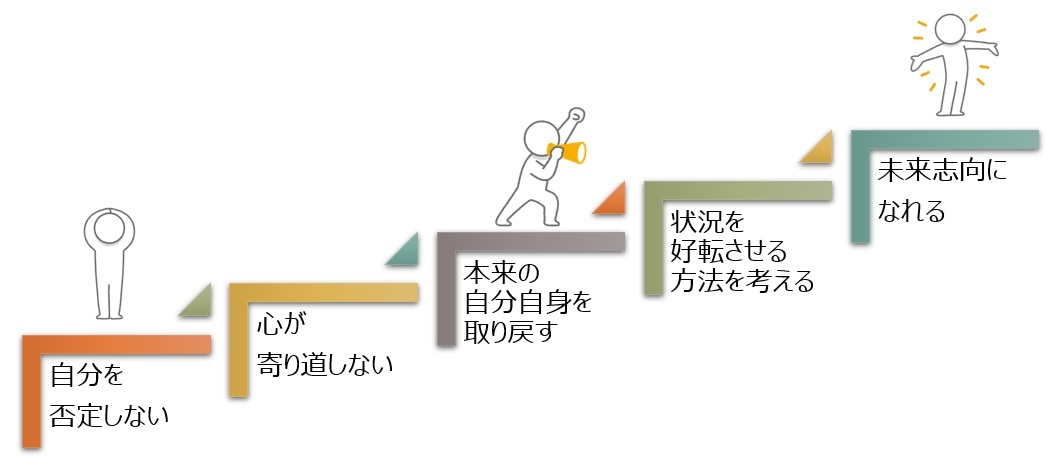 自分を追い詰め過ぎた結果辛くなって、その辛さをケアしたり辛さを回避することに全力を注ぐのではなく、少しでも早く本来の自分を取り戻し、自分らしく「この状況を好転させるにはどうしたらいいか」という未来志向に切り替えることができるようになるのです。