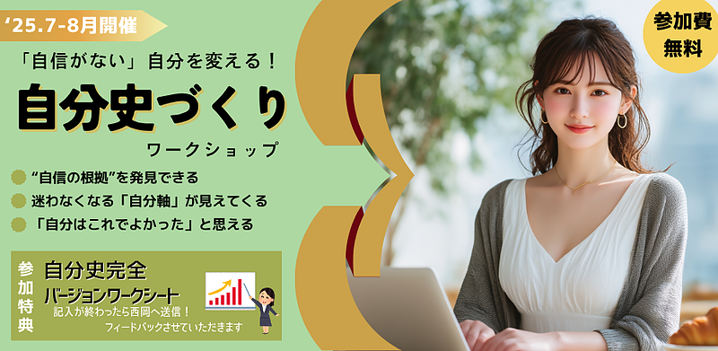 今回のワークショップでは、その「自分史」を一緒にたどりながら、自信の土台となる“自分軸”を見つけていきます。