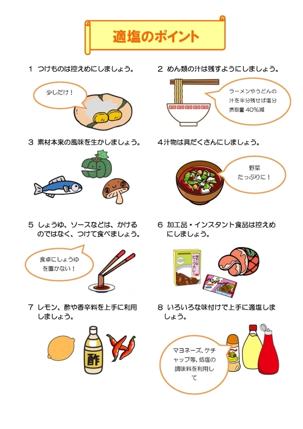 8つの適塩ポイントと,野菜たっぷり適塩レシピをご紹介します。