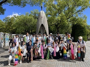 使節団の皆さまは,8月6日(日)に行われた「平和記念式典」へ参列し,浦安市民の皆さまからの千羽鶴を献納したほか,被爆体験記朗読会やヒロシマ青少年平和の集いへの参加,平和記念資料館の見学などを行いました。