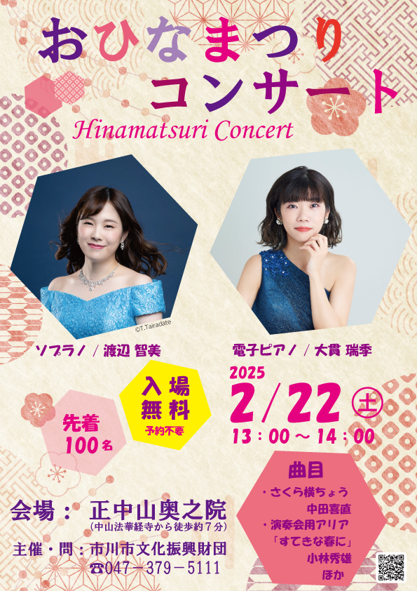 本日は,千葉県市川市で開催される『おひなまつりコンサート』のご案内です。