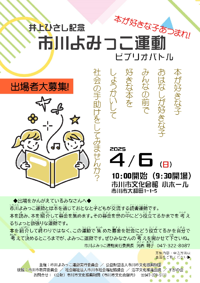 本日は,千葉県市川市で開催される『井上ひさし記念~市川よみっこ運動~(市川市)』のご案内です。