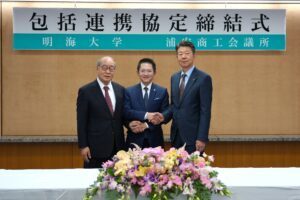 同協定は浦安商工会議所と明海大学が,地域の人材育成や産業支援,学生のキャリア支援を強化し,地域社会の発展に貢献することを目的として,教育,産業等の分野で相互に協力し合う内容となっており,今後,この協定の下で,浦安商工会議所会員事業所の経営者・従業員等及び明海大学の学生の人材育成や学生のキャリア支援,地域振興イベントの開催協力など,様々な取り組みを実施してまいります。