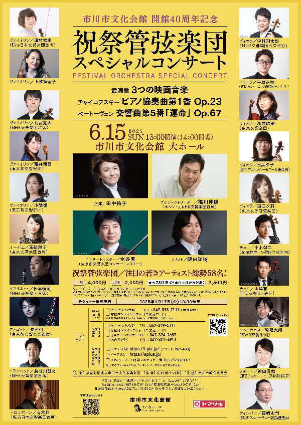 市川市文化会館開館40周年を記念いたしまして,祝祭管弦楽団スペシャルコンサートを開催いたします。